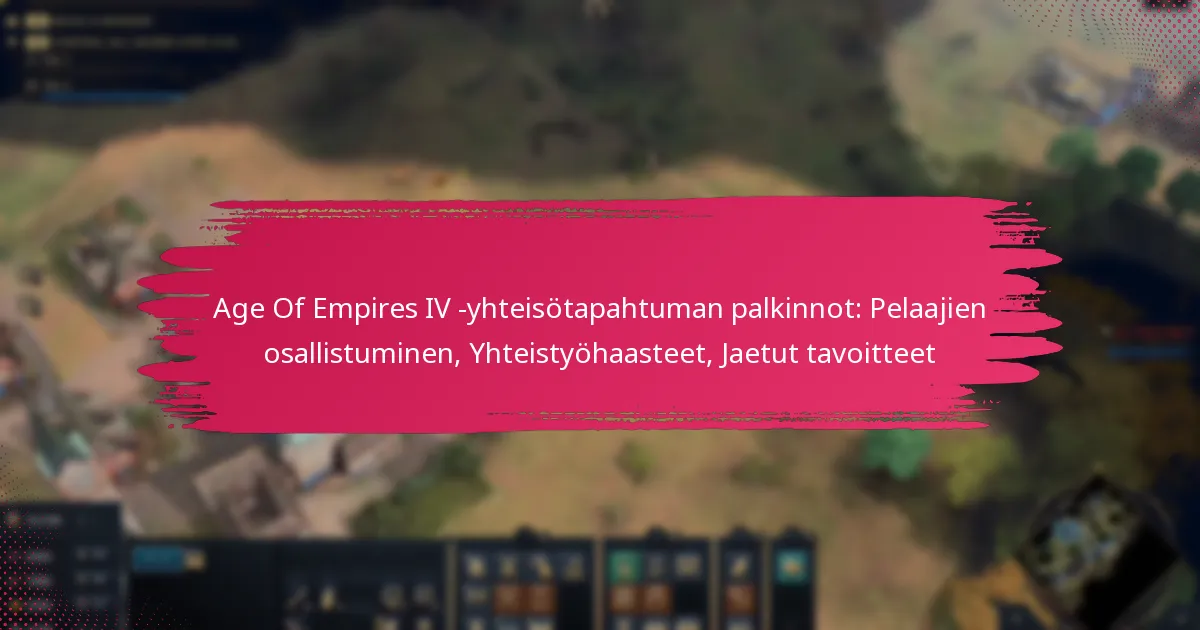 Pelaajat voivat maksimoida palkintonsa Age of Empires IV:n yhteisötapahtumien aikana osallistumalla aktiivisesti tapahtuman mekanismeihin, tekemällä yhteistyötä muiden kanssa ja asettamalla henkilökohtaisia tavoitteita. Haasteiden ymmärtäminen ja edistymisen säännöllinen seuraaminen parantaa koko kokemusta ja lisää mahdollisia palkintoja.