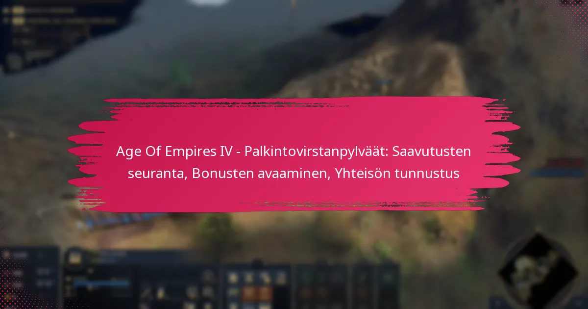 Age of Empires IV:ssä palkintovirstanpylväät edustavat keskeisiä saavutuksia, jotka avaavat erilaisia etuja ja parantavat yhteisön tunnustusta. Pelaajat voivat seurata edistymistään pelin sisäisten työkalujen ja kolmansien osapuolien sovellusten avulla, mikä helpottaa pelin monipuolisten ominaisuuksien hyödyntämistä. Näiden virstanpylväiden saavuttaminen ei ainoastaan tarjoa pelillisiä etuja, vaan myös edistää saavutuksen tunnetta yhteisössä.